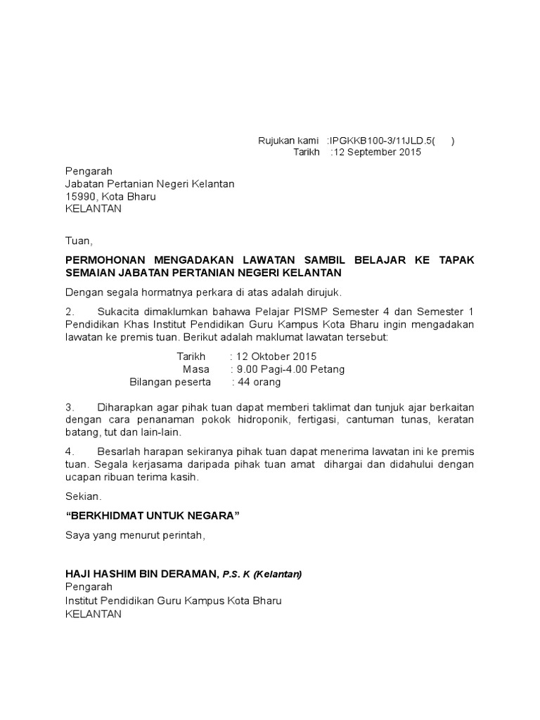 Kalendar 2020 untuk lawatan sambil belajar. Dihantar ke jabatan pelajaran negeri. Lawatan sambil belajar ekosistem kondusif sektor a. .sambil belajar ke universiti (7.9mb) dan streaming kumpulan lagu contoh surat rasmi lawatan sambil belajar ke universiti (7.9mb) mp3 terbaru di metrolagu dan n. Saini • menyediakan dan menyiapkan segala jenis surat yang diperlukan oleh jawatankuasa kerja untuk perjalanan program.(dibantu oleh guru.