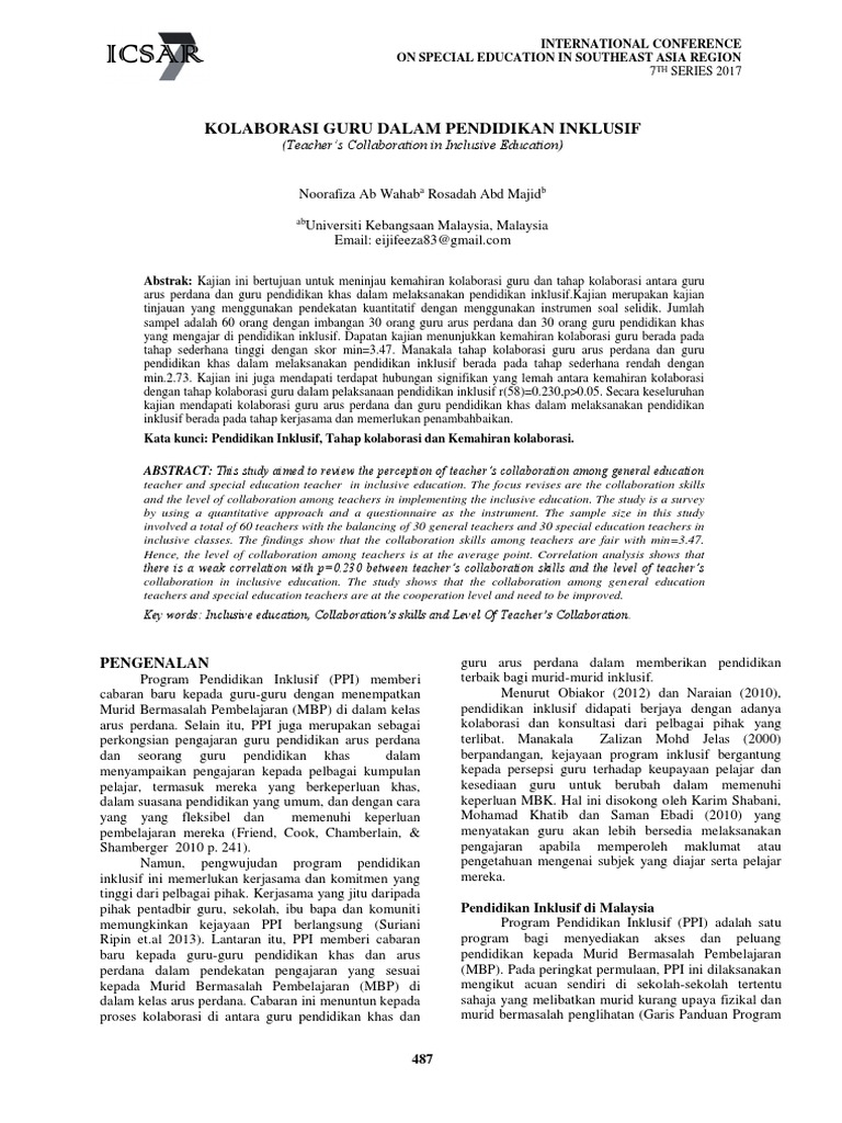 Related : Jurnal Pendidikan Inklusif Di Malaysia : Abdul rahim, pendidikan inklusif sebagai strategi 69..